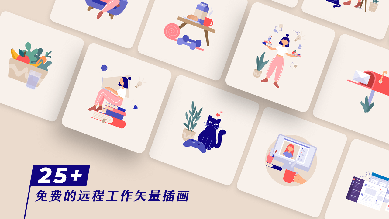 大家好,我是独立开发者Larry~,今年的疫情促使了很多远程工作者,今天发现了一组远程工作的矢量插画,质量很高,插画支持SVG、PNG、Figma和AI格式,可免费用在个人和商业项目中。
